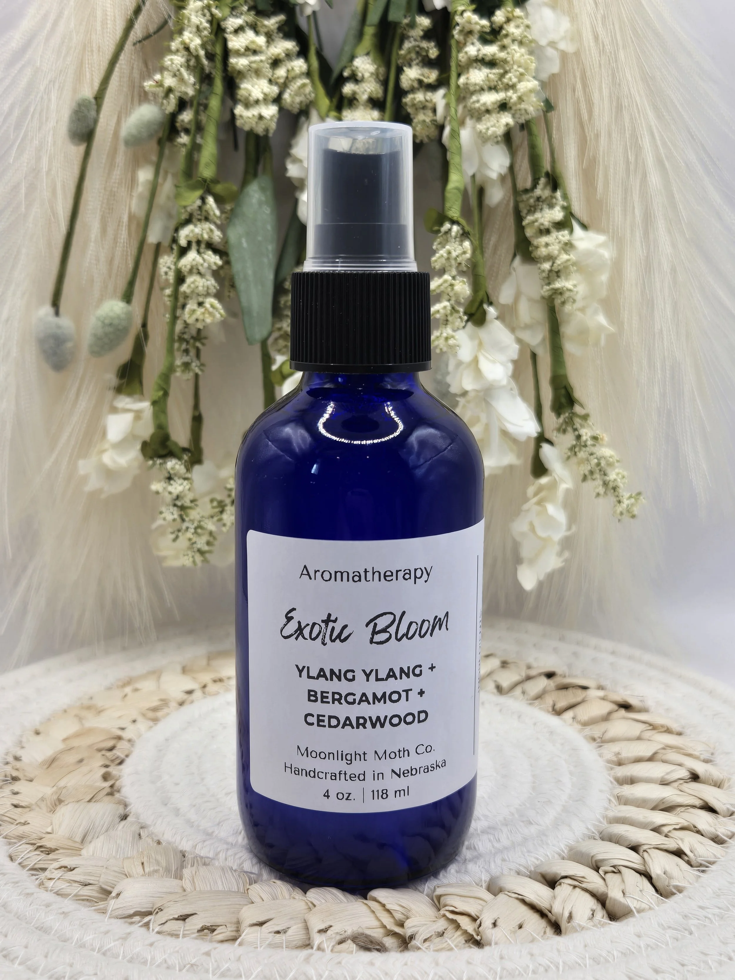 Bring a touch of mystery and warmth to your space with Exotic Bloom, a handcrafted aromatherapy mist designed to refresh and elevate any room. This enchanting blend combines ylang ylang, bergamot, and cedarwood, creating a beautifully balanced aroma that is both exotic and grounding.