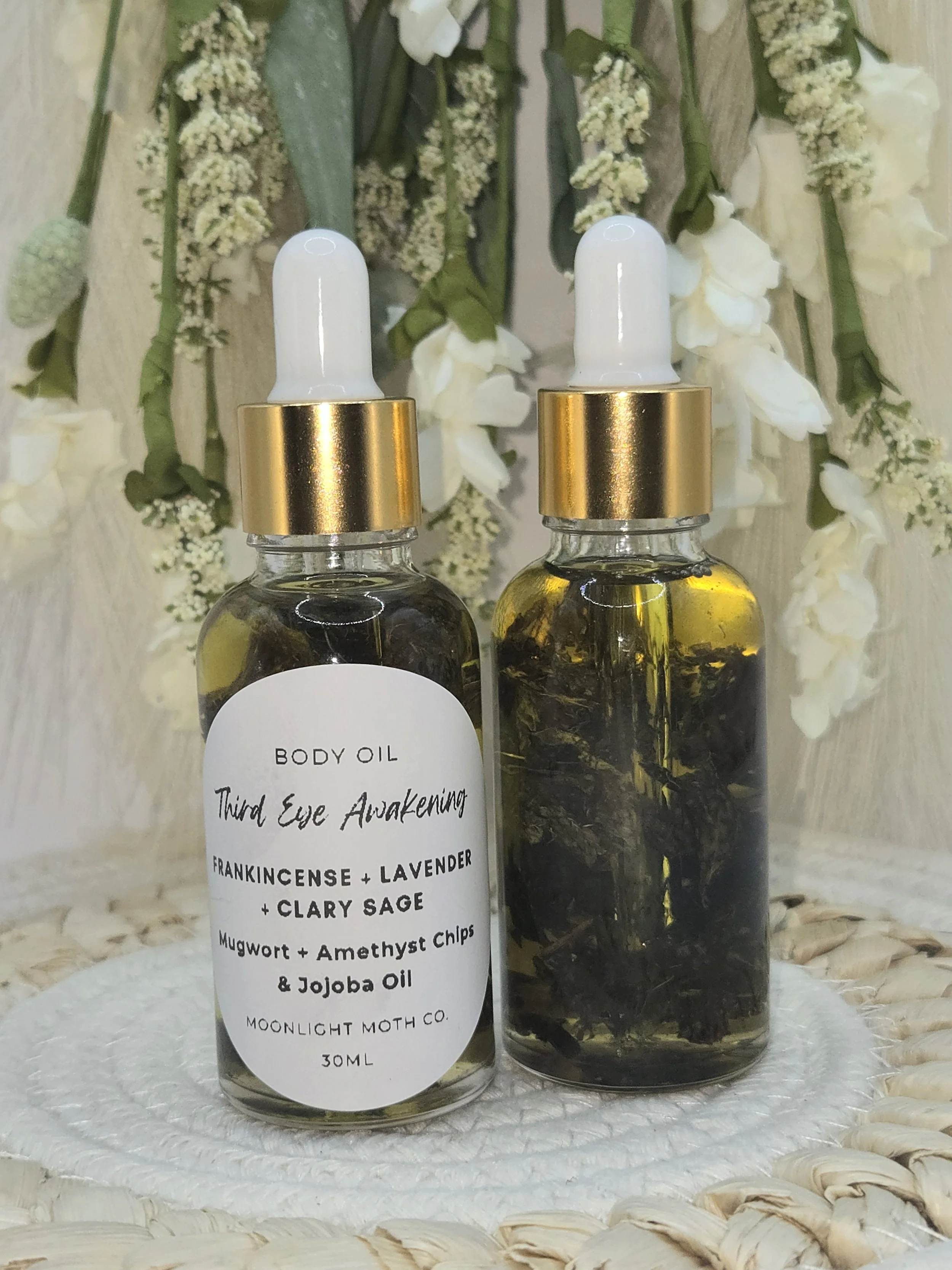 Each oil comes in a 30 ml (1 oz) glass bottle designed to preserve the quality of the oils and botanicals. The bottle features a dropper top for easy, controlled application and minimal waste.